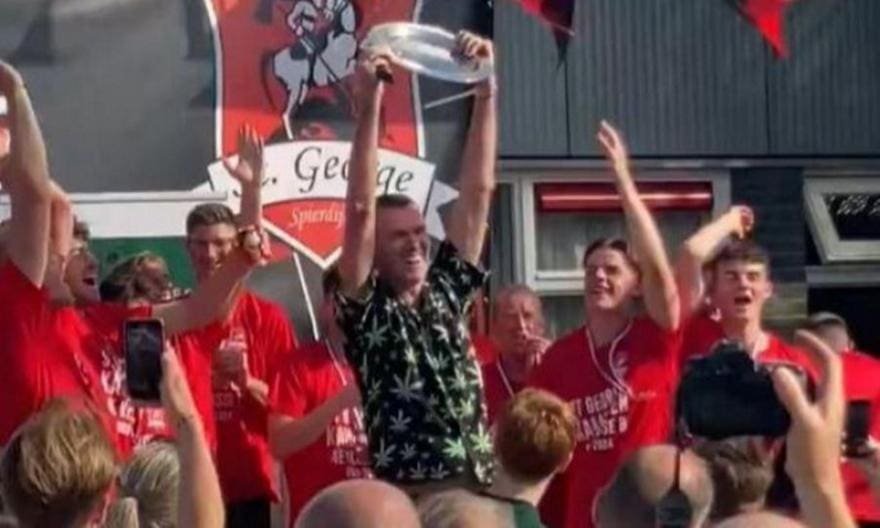 Πανηγύρισε και με τους ποδοσφαιριστές της St. George την κατάκτηση του τίτλου, σήκωσε την κούπα, ενώ πήρε το μικρόφωνο για να τραγουδήσει τον ύμνο της ομάδας!
