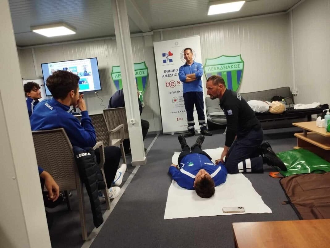 Συγκεκριμένα οι νεαροί ποδοσφαιριστές των ομάδων U19 και U17 πήραν απαραίτητες συμβουλές από το ΕΚΑΒ Λιβαδειάς, σχετικά με τις πρώτες βοήθειες που θα μπορούν να δώσουν μέσα στο γήπεδο.