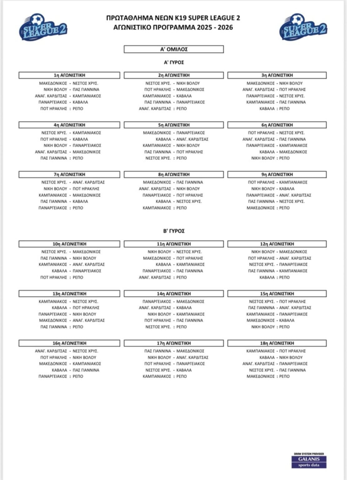 Η Κλήρωση για το Πρωτάθλημα U19 της δεύτερης κατηγορίας έγινε σήμερα και βγήκαν οι αγωνιστικές των ομάδων.