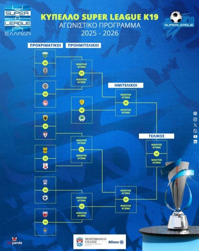 Η Super League πραγματοποίησε την κλήρωση για το Κύπελλο U19, που πέρσι κατέληξε στα “χέρια” του ΠΑΟΚ.