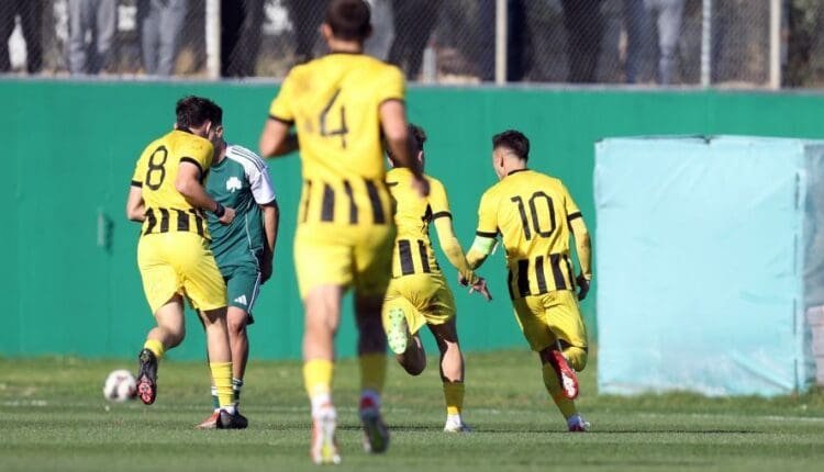 Συγκεκριμένα το 1-2 για την ΑΕΚ στο Κορωπί ήρθε από τον νεαρό Παλαιολόγου, που “έπιασε” ένα τρομερό σουτ από μακριά και την έστειλε στα δίχτυα των αντιπάλων.